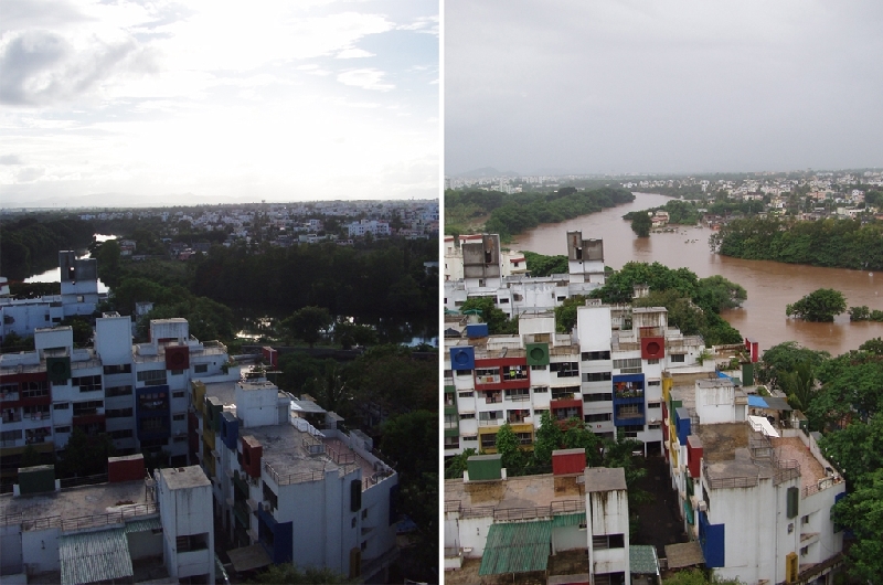 These before and after photos by Vijay Kurup clearly bring out the contrasts that the floods created, in the life of Punekars.